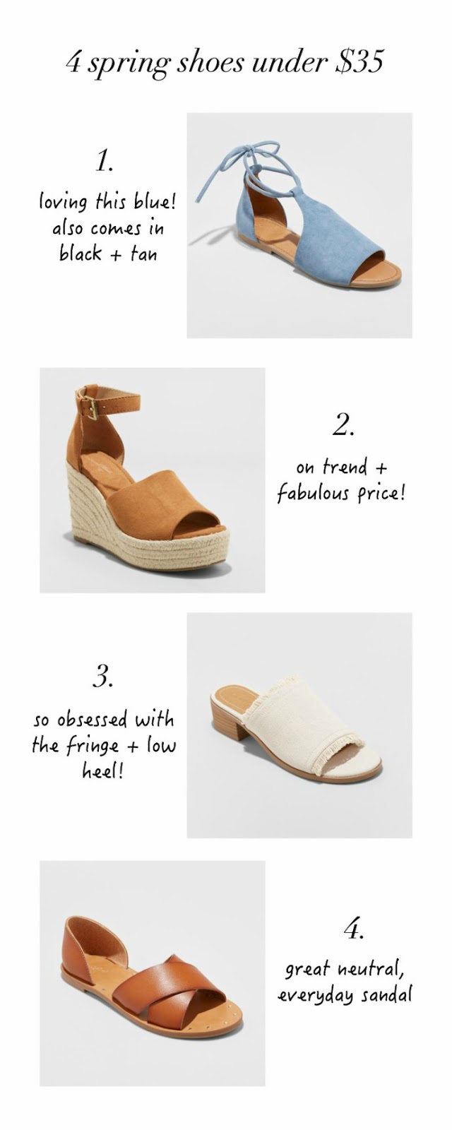 either way! – I’m stoked about the prettiness that I’ve found for you all today! these four pairs of adorable shoes are practical and stylish! I love that they all look really high end π but the secret is … they’re ALL from Target! not one pair is over $35! can you even believe it?!