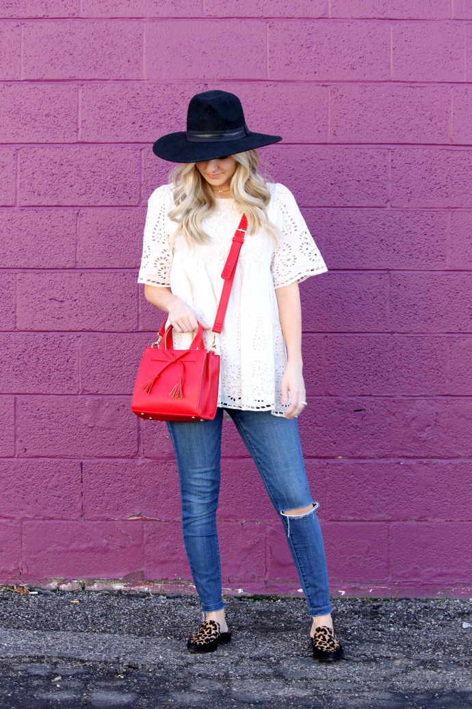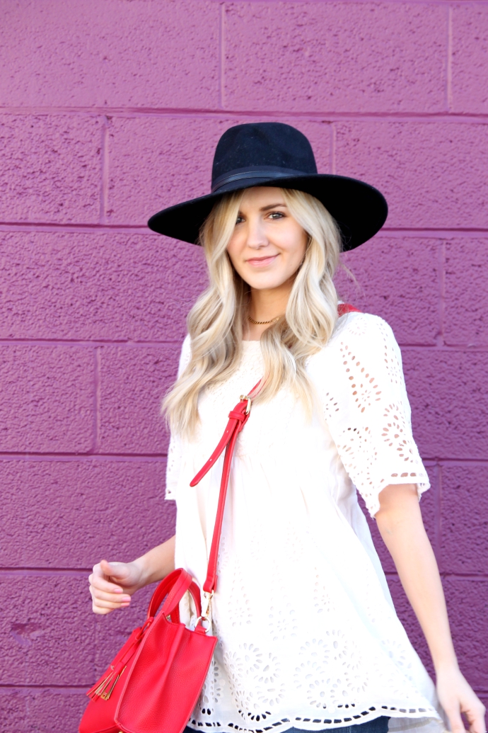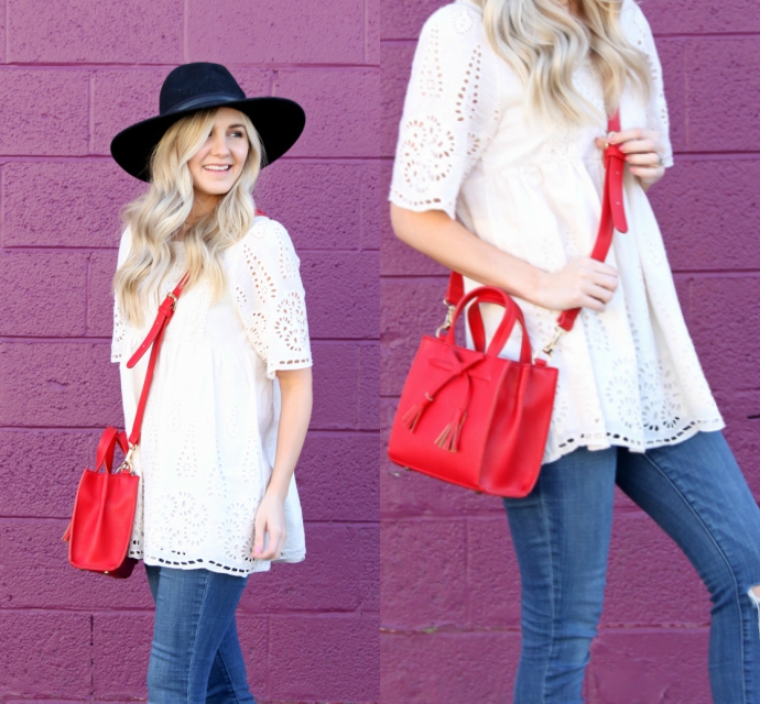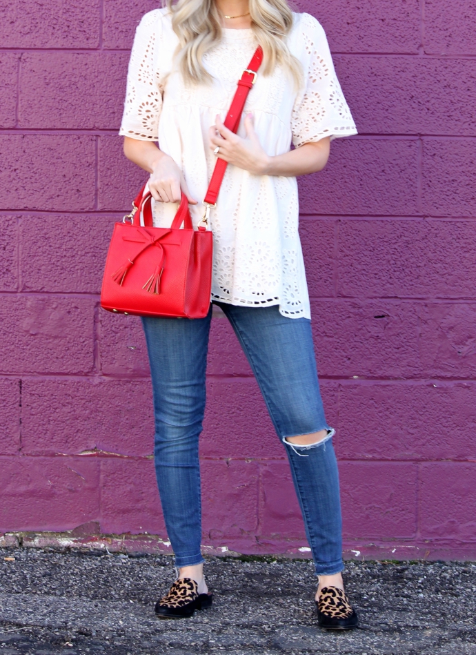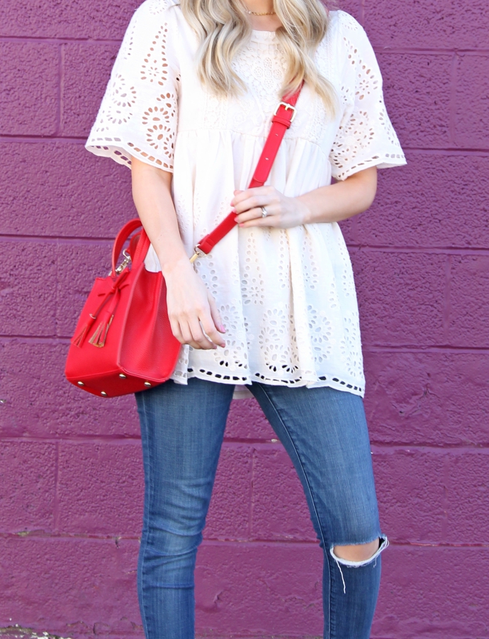 this pretty eyelet top I got last year from a boutique, so I linked a handful of equally as cute options π because one can NEVER have too many white, lace, flowy tops – seriously though, I wore this throughout my pregnancy and it’s a great option for after as well