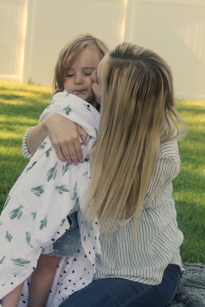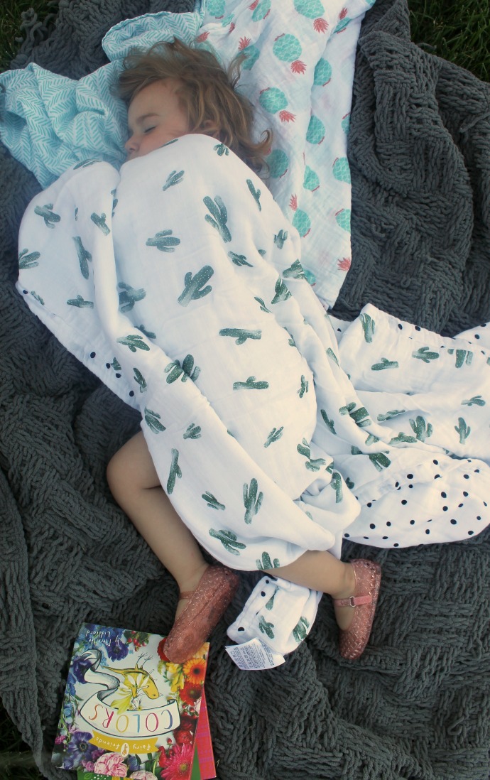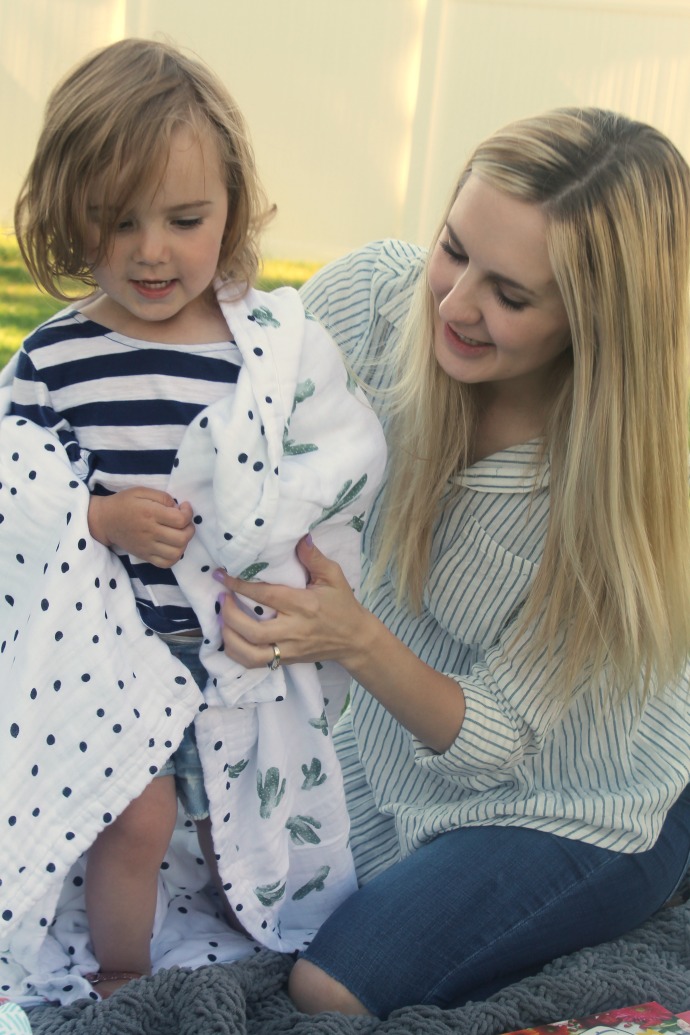 Navi was seriously so excited and happy as we opened up this beautiful blanket – since we’ve taken these photos she’s used at least one of the snuggle blankets or the lightweight swaddles for her naps or for bedtime. I had actually chosen the prints of these beauties before I knew we were expecting another girl, so I chose slightly more gender neutral options and I love that the Saguaro + Dottie (cacti and dots) is still cute for girls too!