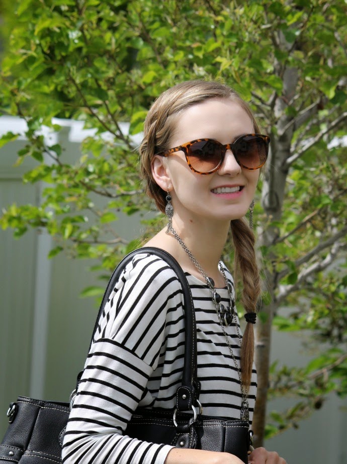 top, similar | short necklace, on sale! | long necklace, old | earrings, old | watch | flats | shorts, old | bag