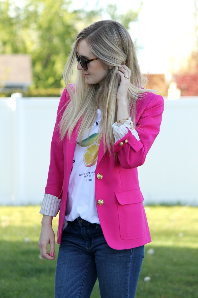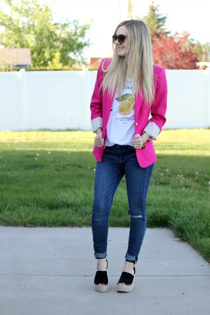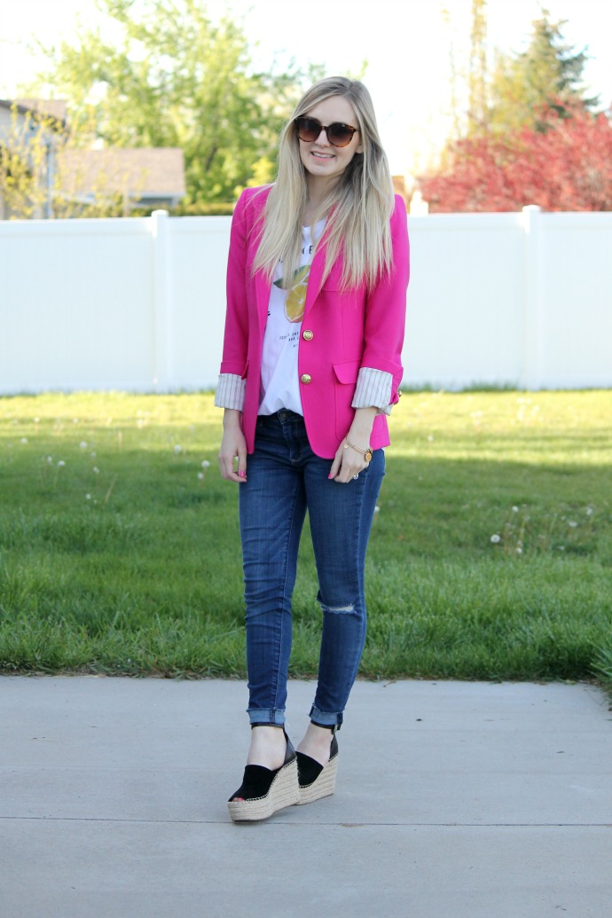 J.Crew blazer, old // Abercrombie denim, old // Marc Fisher wedges // lemon tee, tried linking cute ones from this season – found mine last year in Canada on vacation π