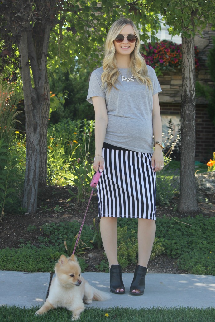 to appear taller and slimmer, choose shoes that show off your ankles – no straps or thick material near that area and if I had tucked in my shirt and pulled my skirt up to my narrowest point (under my bust) I would’ve looked like I had longer legs π *** let me tell you though! π as much as I LOVE fashion …. right now I’m about comfort and this outfit was perfect for my growing body π