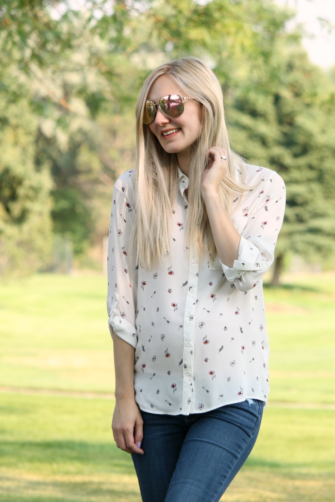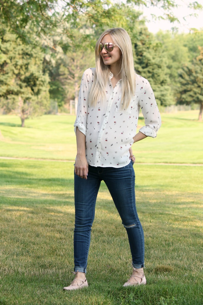 to be honest with you guys, I wear button down tops almost always. they’re just really comfortable AND I feel a bit more put together than an old tee shirt π it’s just a thing I do to be a little more polished and adding a fun shoe always makes the outfit come to life!