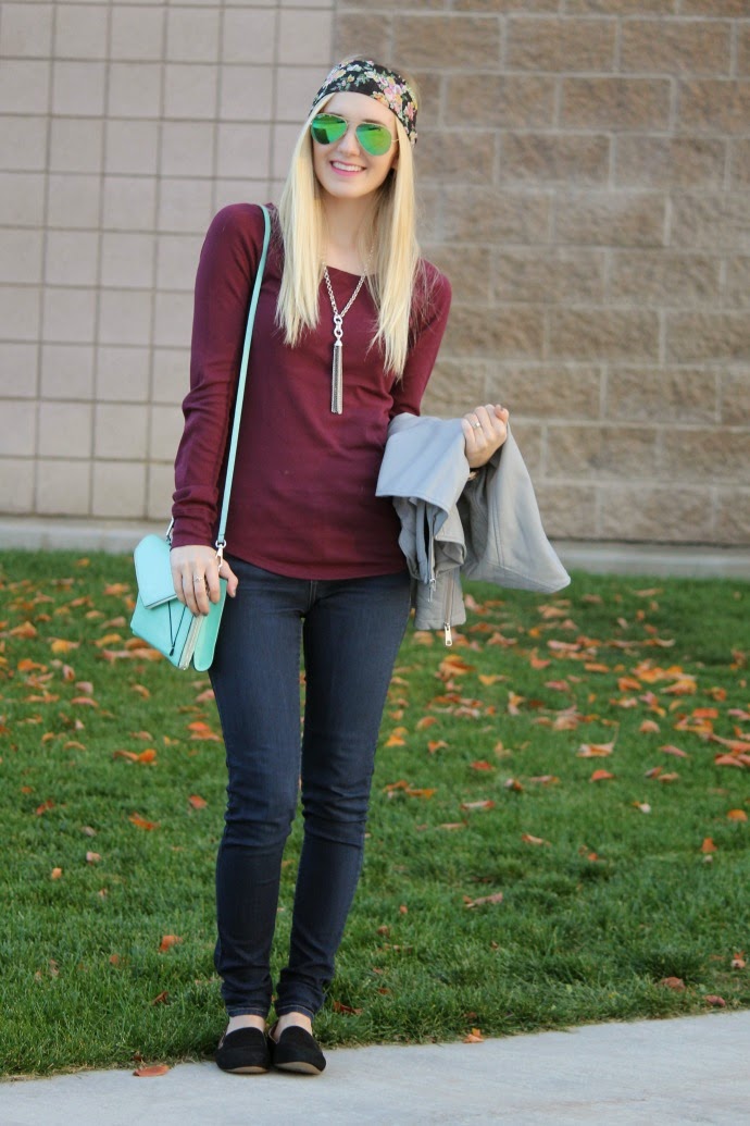 moto jacket, Kohls (similar jackets linked below) // VS Pink thermal top // Flying Monkey jeans via Bohme // J.Crew Factory loafers // head wrap c/o Bloom by Haley Anne // Ray Ban sunglasses // Rebecca Minkoff bag