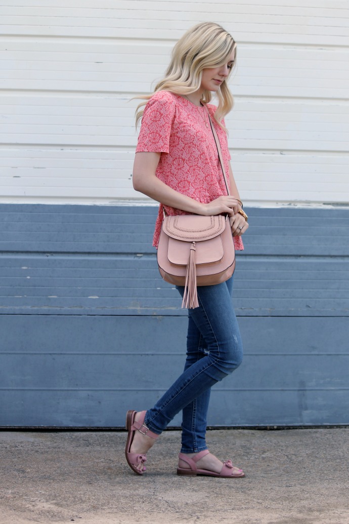 I consider my style to be classic and girly, and a peplum is a classic silhouette (in my opinion) and so to add all of the pink and delicate touches with the jewelry, bows and bag were an easy choice for me in styling this look.