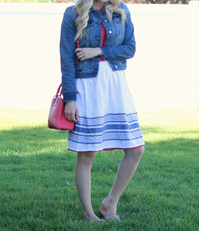 I always try to come up with really cute 4th of July looks, but usually the day of π I’m in the pool or working, sooooooo hoping this year I’ll actually be able to enjoy some bbq and fireworks, right?! this look features a denim jacket – take it off in the heat of the day and wear it at night when it starts cooling down and you’ll be out enjoying time with family and friends π our city always has such a beautiful fireworks show! it’s definitely one of my favorite things about summer