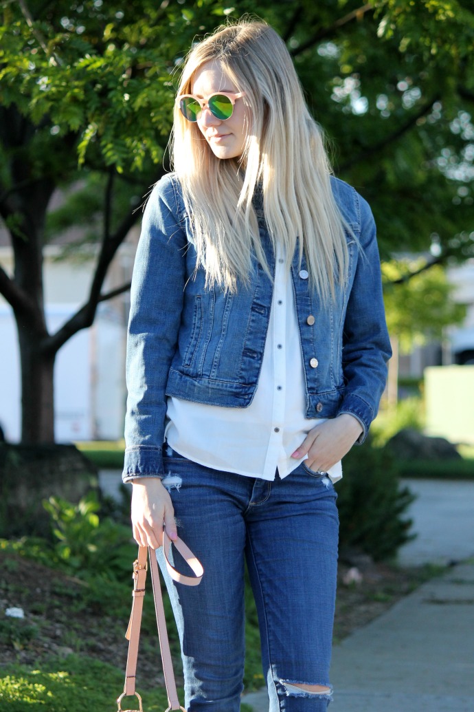 this outfit has a very ‘Madewell’ vibe that I very much like. while I’ve personally never shopped at Madewell – I certainly love their style. I picked up my white top and denim jacket at a few different boutiques around so I thought I’d share how to get my look here …