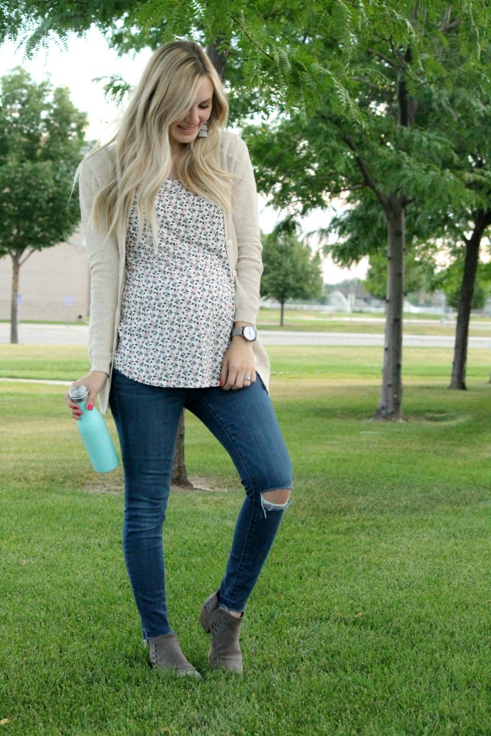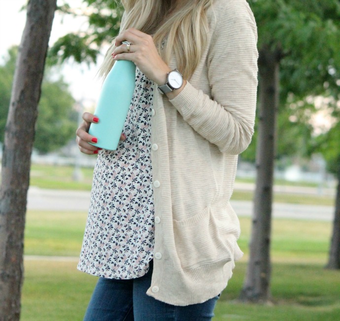 floral tee, cardigan & waterbottle