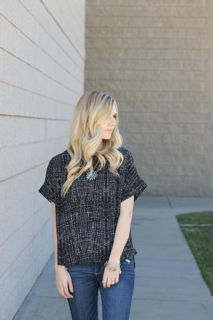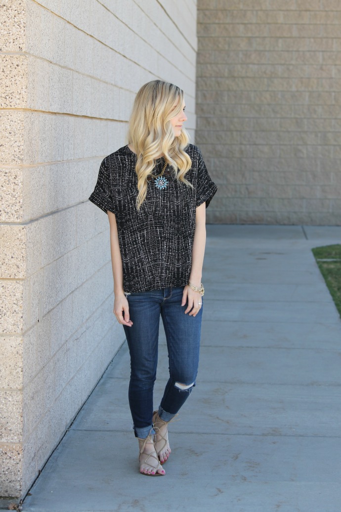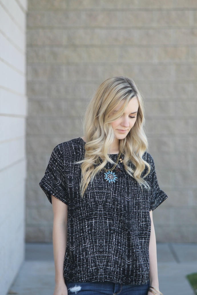 Forever 21 blouse // necklace and bracelets (borrowed from sister) get the look, linked below // Abercrombie jeans // Steve Madden sandals