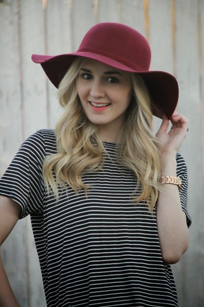 striped tee c/o Hope Avenue // faux leather leggings c/o Fabrik // Bohme hat // J.Crew Factory loafers // Fossil watch