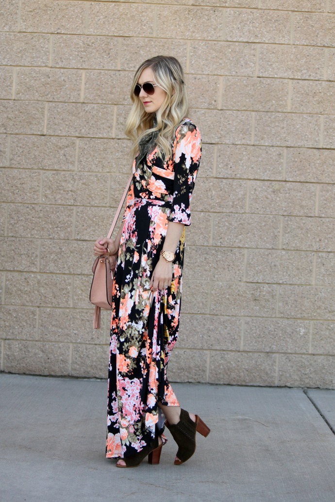 today’s look is a dressy outfit I wore to church a couple weeks ago, I had just picked up this olive bandana and was so eager to wear it that I decided to pair it with this floral dress that I got in early summer π I love that the floral has olive in it, and that dark backdrop makes it so fall appropriate! I think florals should be worn all year long, who’s with me!?