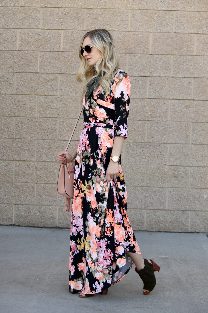 today’s look is a dressy outfit I wore to church a couple weeks ago, I had just picked up this olive bandana and was so eager to wear it that I decided to pair it with this floral dress that I got in early summer π I love that the floral has olive in it, and that dark backdrop makes it so fall appropriate! I think florals should be worn all year long, who’s with me!?