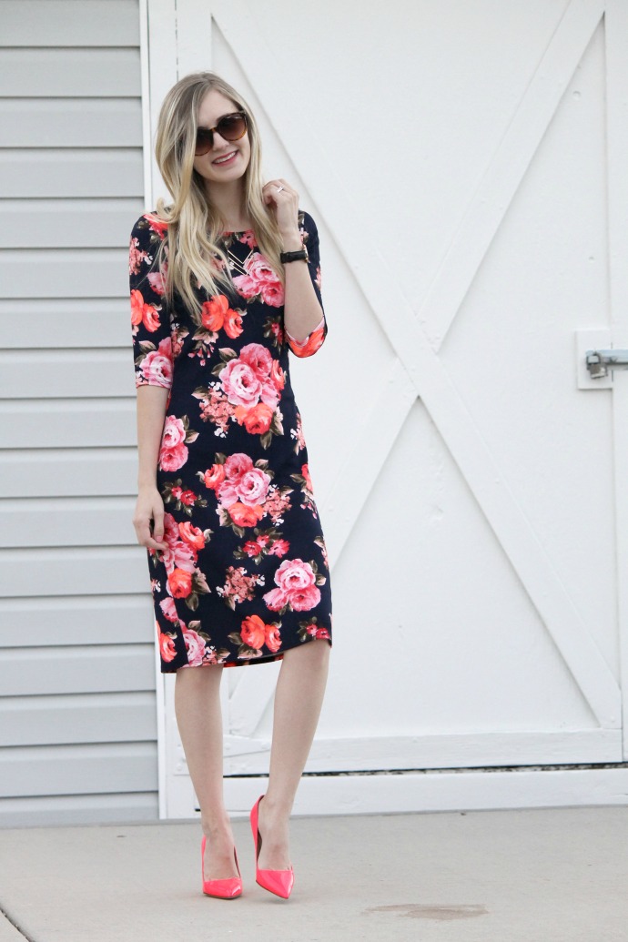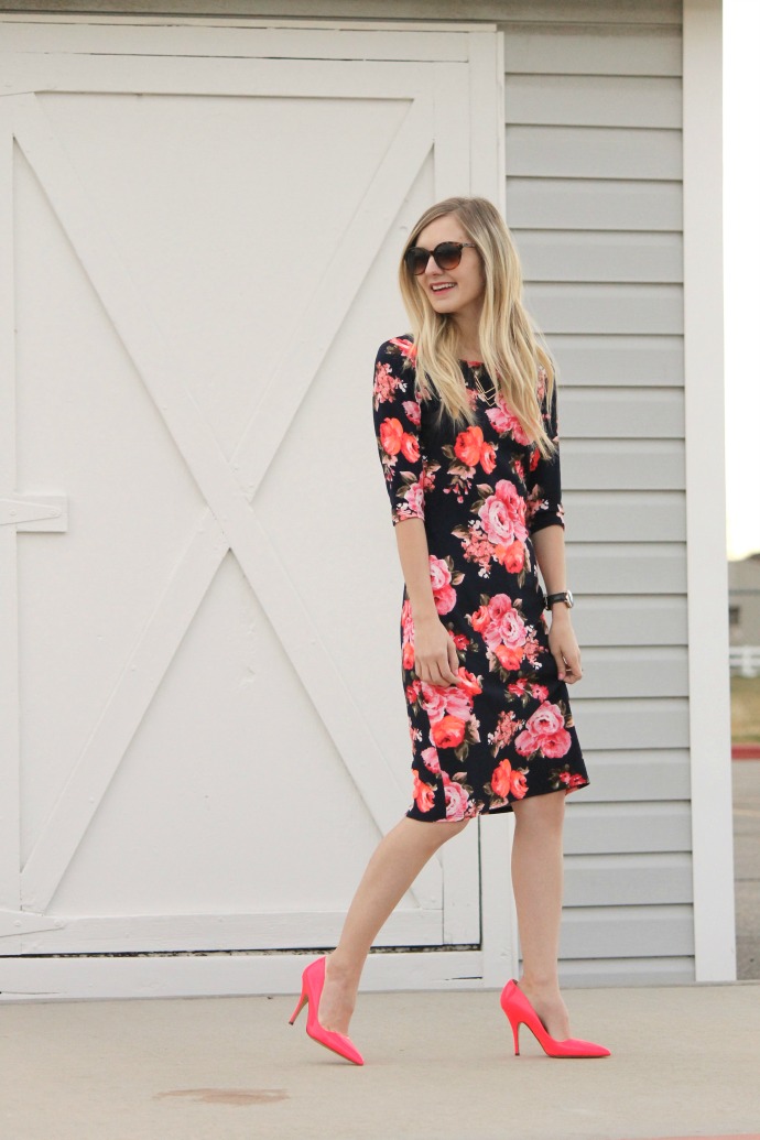 something about wearing a bright floral dress in the winter makes me feel a bit like a rebel π in the best way! there are NO fashion rules anymore, wear what you want, when you want to! neon heels, you betcha π I don’t wear these Kate Spade pumps as much as I wish I would, so when I got this stunning fitted dress from Wight Gold – I got REALLY excited!