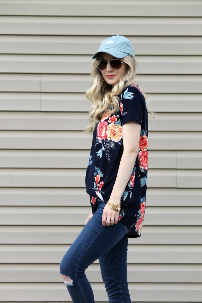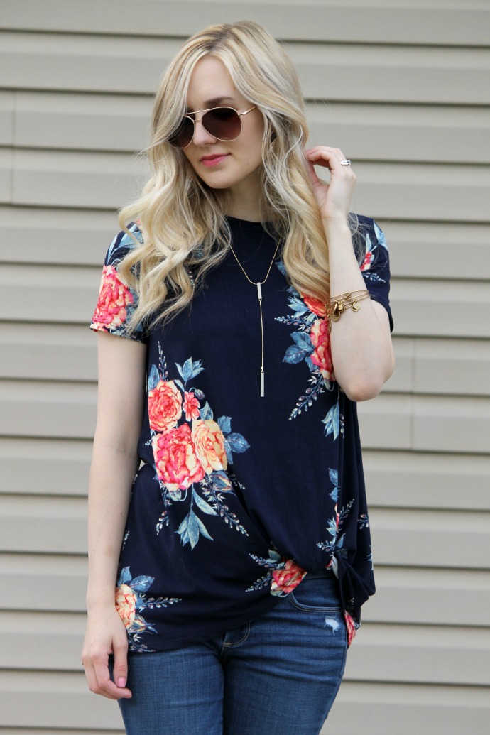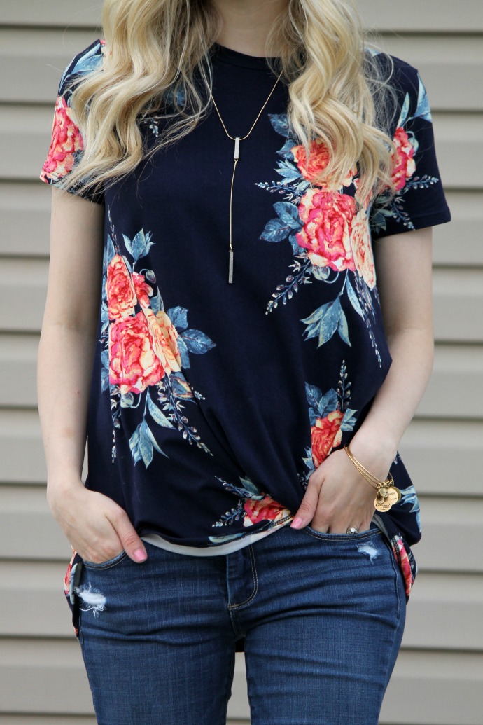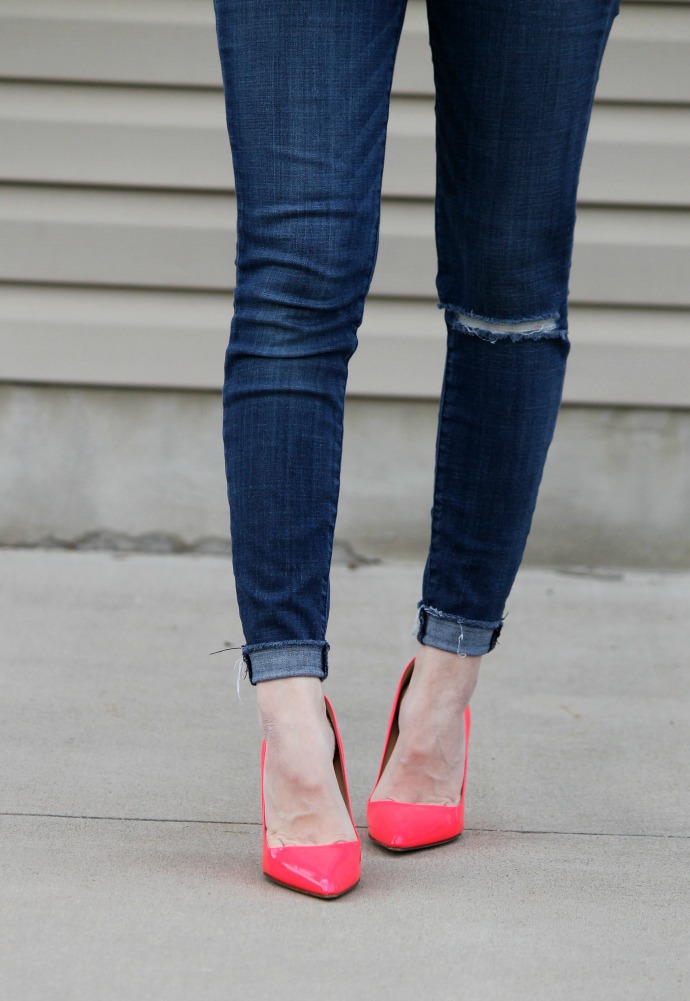 quick tip : throw on heels and a pretty necklace to take any tee shirt and jeans look to the next level! (I kept my jewelry simple and all gold, while the shoes and tee can shine and take the spotlight!)