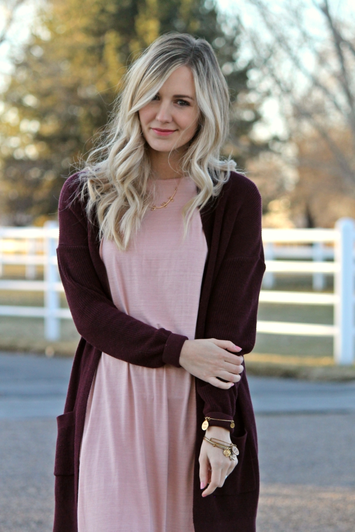 I wore a similar outfit when I was pregnant with Indie and remembered how much I loved this pink dress, I always think pink goes with everything π but I especially love it paired with a rich burgundy like in this look π what colors do you pair with pink? let me know in the comments π