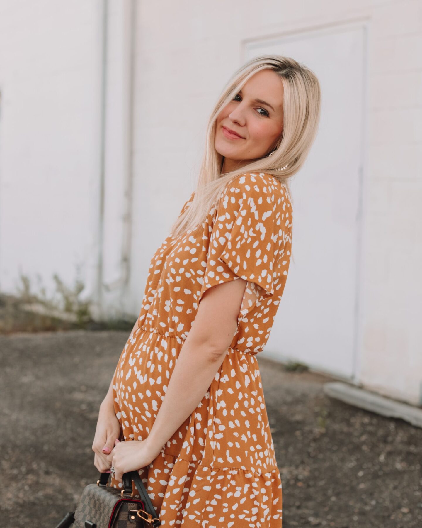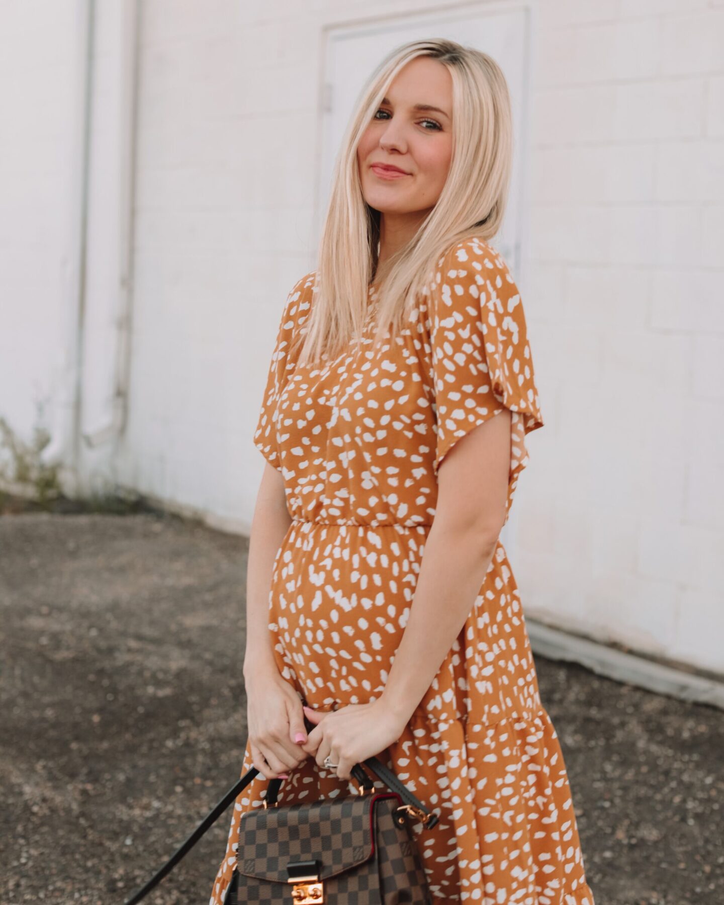 lately, my wardrobe has been mostly dresses and skirts. I’m about 27 weeks along and flowy things are feeling the comfiest around the bump. I took an opportunity to ‘ditch the diaper bag’ and brought a purse to Target! woo!!! felt so freeing lol but we’ll be back to diaper bag status in just a few months anyway – so I’m not celebrating too hard