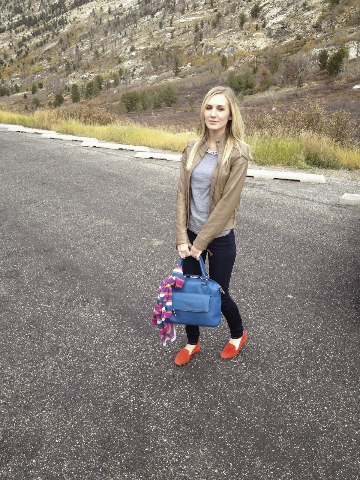 Jacket: old, similar style: Forever 21 | Shirt: old, similar style: J.Crew Factory | Jeans: Hollister | Loafers: J.Crew | Necklace: Cheyenne | Purse: Taylor Bag, Claire Clutch | Scarf: old, loving this one: J.Crew Factory