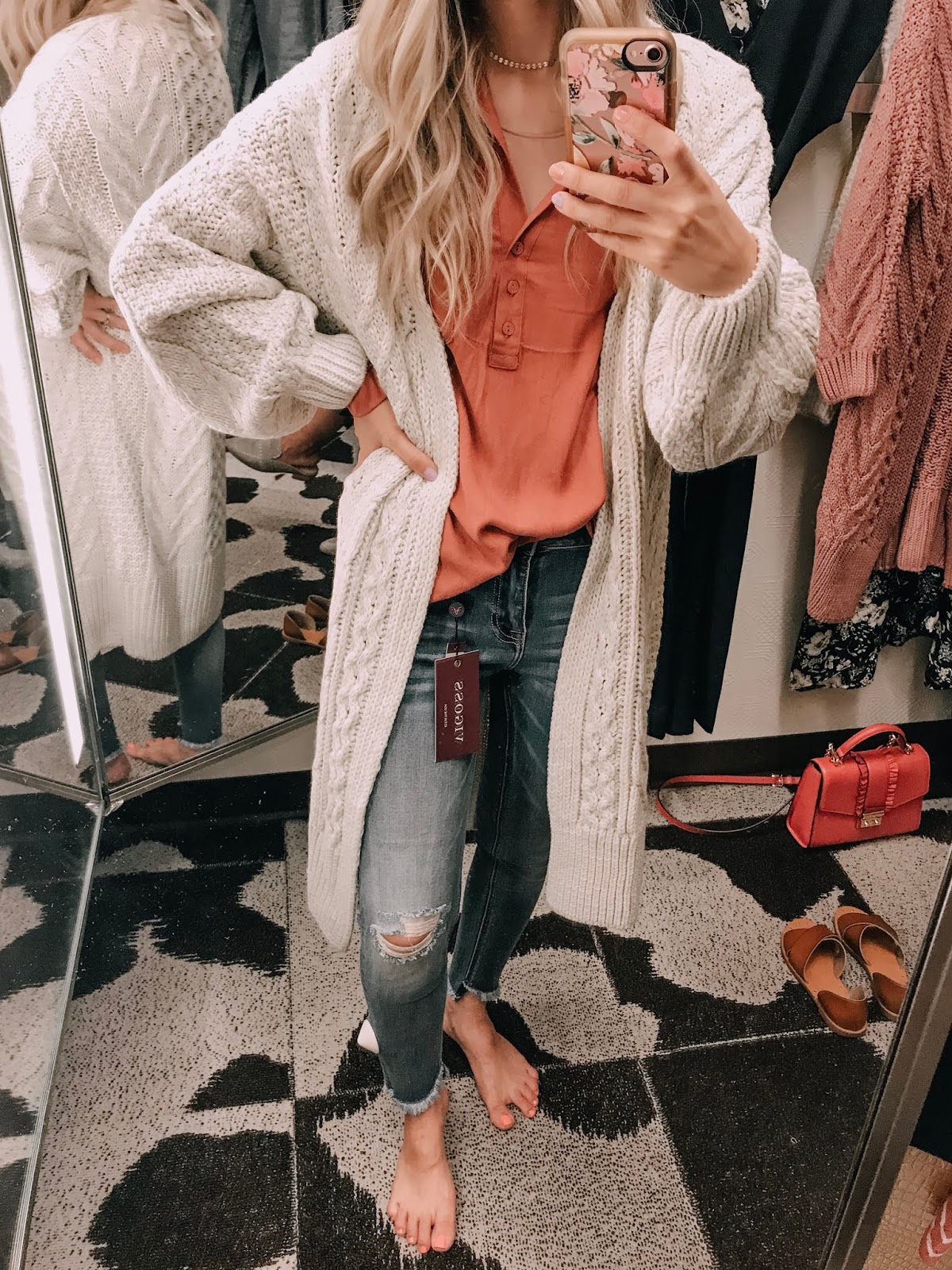 I swear EVEVERYONE bought this cardigan, which is way funny to me, it’s beautiful and very comfy but it’s so huge. I am keeping it in the pink and the cream and I’m going to share them with my mom. she’s taller than me and they honestly fit her and look better on her too π