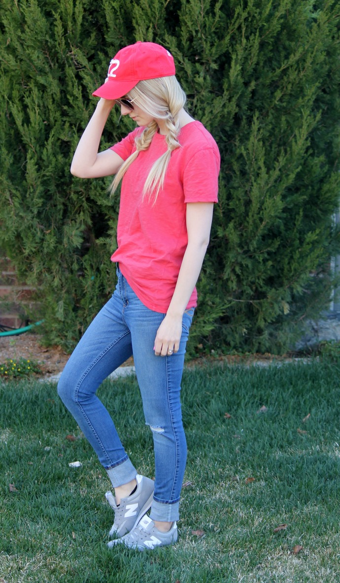 this look is seriously one of my favorites as of late π do I say that every day????? probably. am I going to stop?? probably not π haha. being honest though, this outfit is so easy and so comfy. I love high waisted denim, slightly baggy tee shirts and hair out of my face – so this look is a major win!!