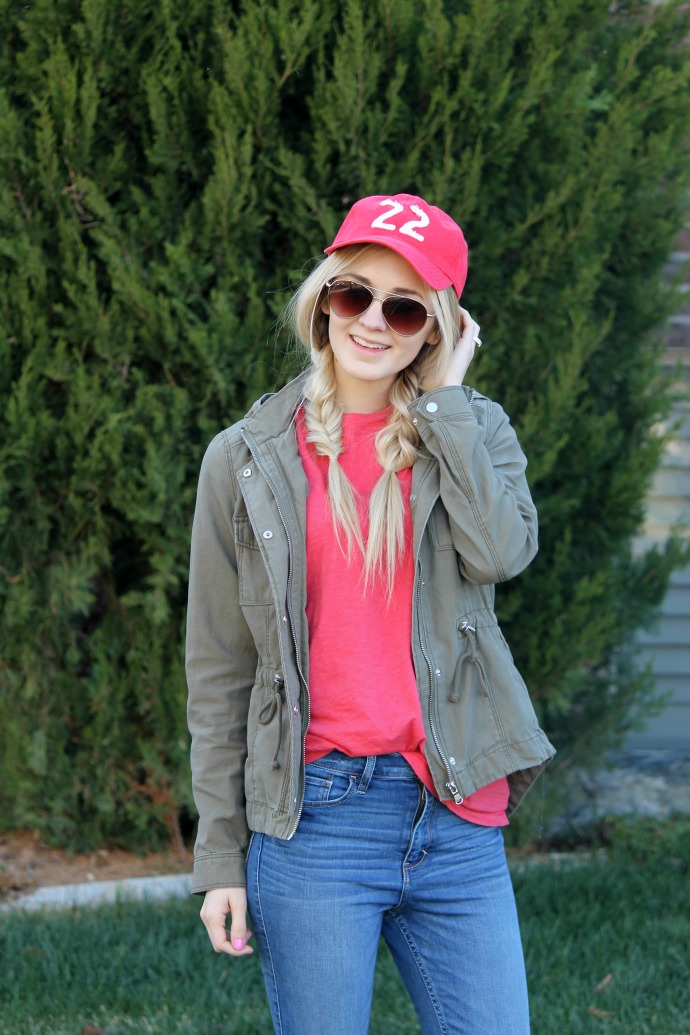 Hollister hat, old // Abercrombie jeans // New Balance sneakers (linked below) // AEO tee (guys’ section) // Target sunglasses (linked below)// H&M jacket, found similar
