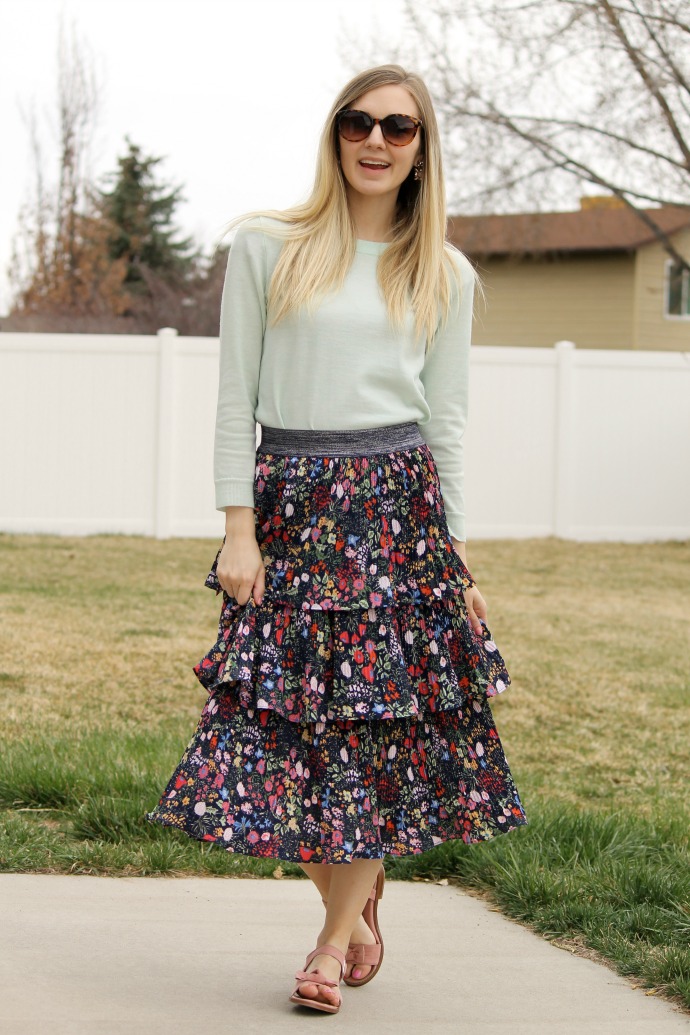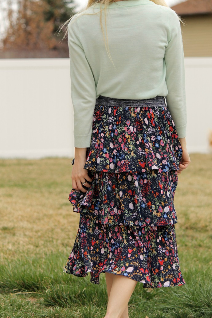 this skirt is probably my favorite in my closet right now, I love the floral pattern (of course!) but my even more favorite thing is the ruffles!!! I love the tiered layers and the volume this flirty skirt has. it’s just so feminine and fun! I’m excited to style it so many more ways this spring season π