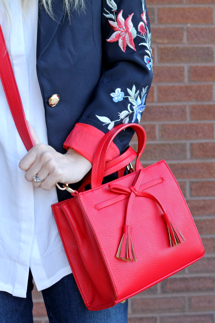 red is one of the hottest colors for this fall and winter! seeing this bag in store was amazing and I just had to have it as my pop of red this season π I don’t typically wear red but I can totally do it in small doses. the embroidery on this blazer is incredible and yet again, nailing two more trends with this jacket! military style / blazers and embroidery! both of which I’m LOVING right now! finding unique pieces like my blazer can be hard especially when you’re on a budget or if you don’t want to splurge on a trend that may not be around forever π that’s where Romwe comes in. Romwe has a fabulous selection of clothes and accessories that are right on trend that are fit for ladies with real budgets!