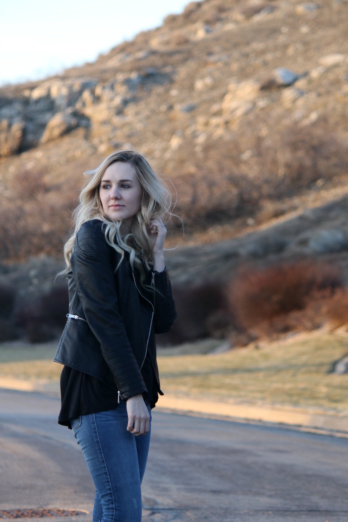 feelin’ pretty fly in my new balance sneaks and a moto jacket. π this isn’t a usual combination for me so I was a tad nervous (fashion bloggers can get nervous trying new things too!) I kept the styling and color palette very simple so I wouldn’t take away from how easy and effortless I wanted this look to be. I can easily over do something – I actually really try to minimize my details and go for an effortless look, it doesn’t always end up that way though.