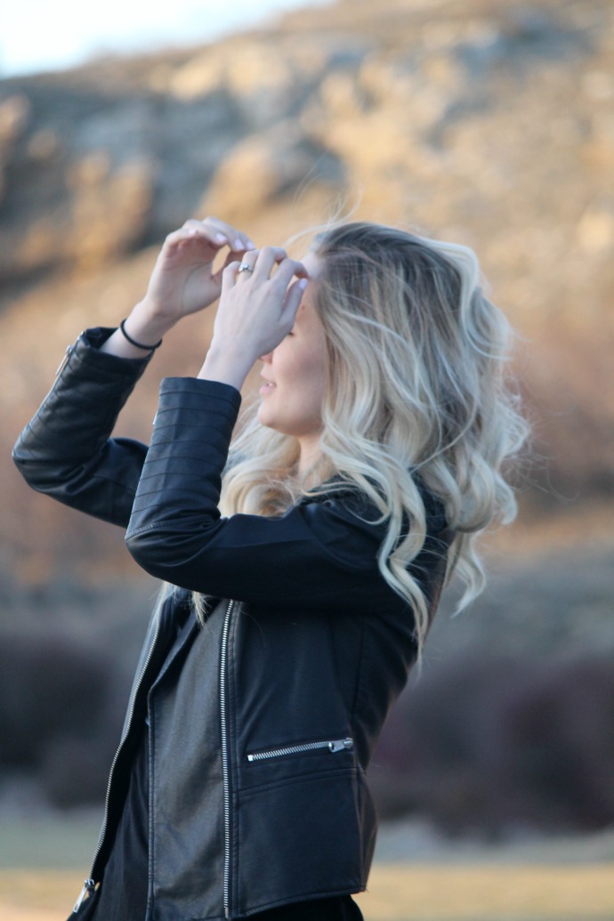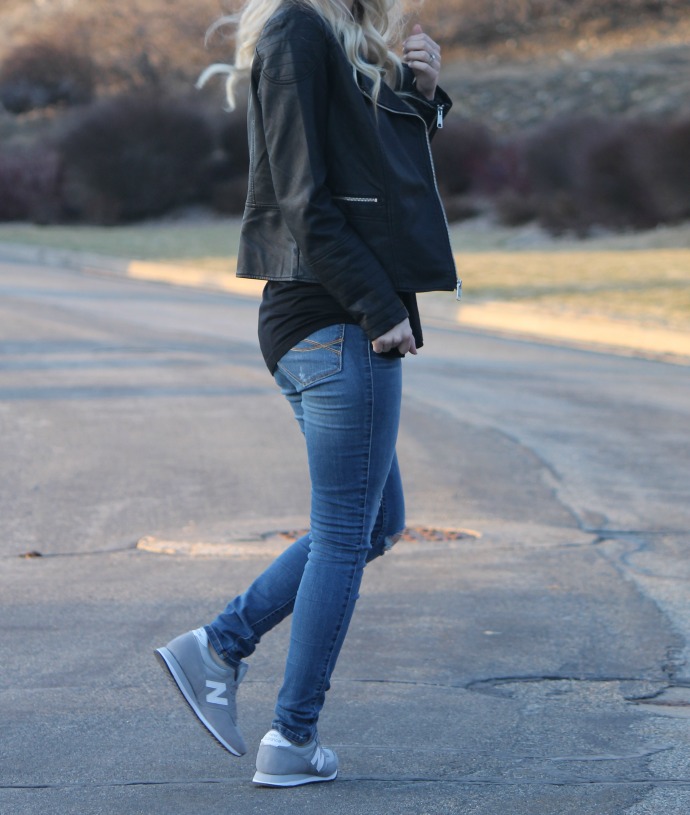 feelin’ pretty fly in my new balance sneaks and a moto jacket. π this isn’t a usual combination for me so I was a tad nervous (fashion bloggers can get nervous trying new things too!) I kept the styling and color palette very simple so I wouldn’t take away from how easy and effortless I wanted this look to be. I can easily over do something – I actually really try to minimize my details and go for an effortless look, it doesn’t always end up that way though.