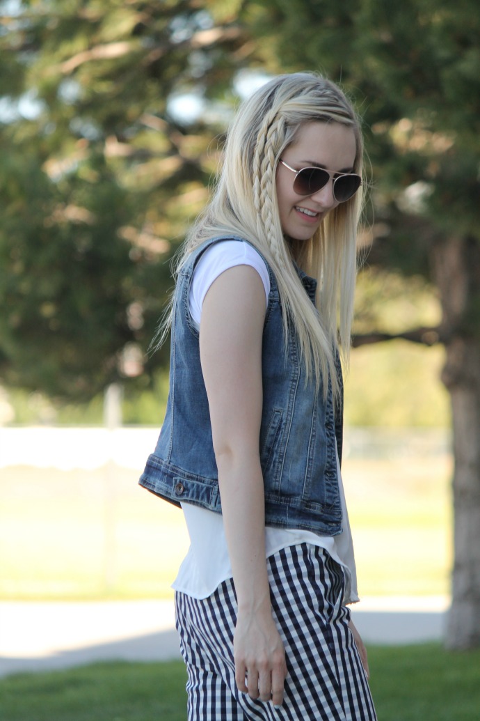 I love my denim vest and am always searching for new ways to wear it – sounds silly because it just pairs over everything, but wearing it with my dressier gingham pants was a fun mix!