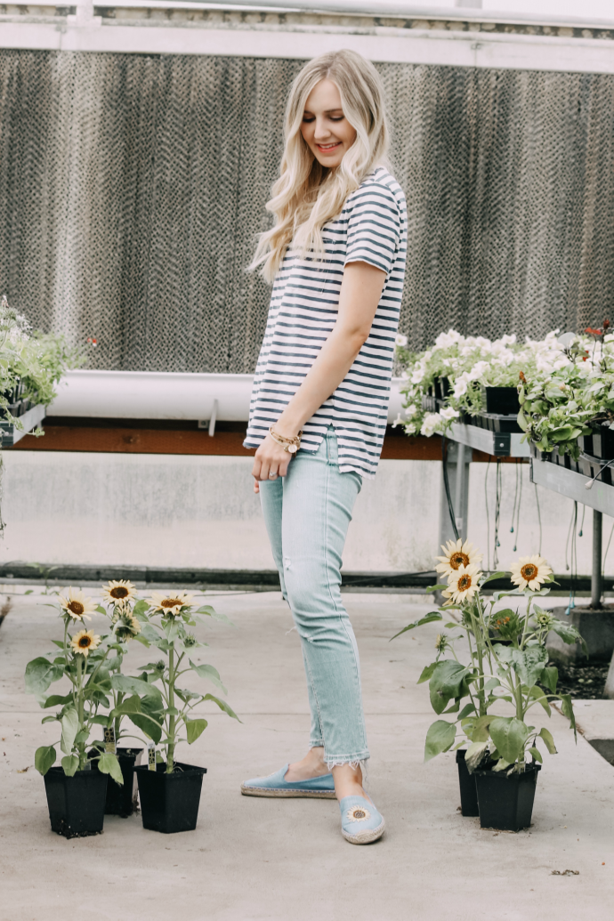 comment below if you love sunflowers or matching striped tees!