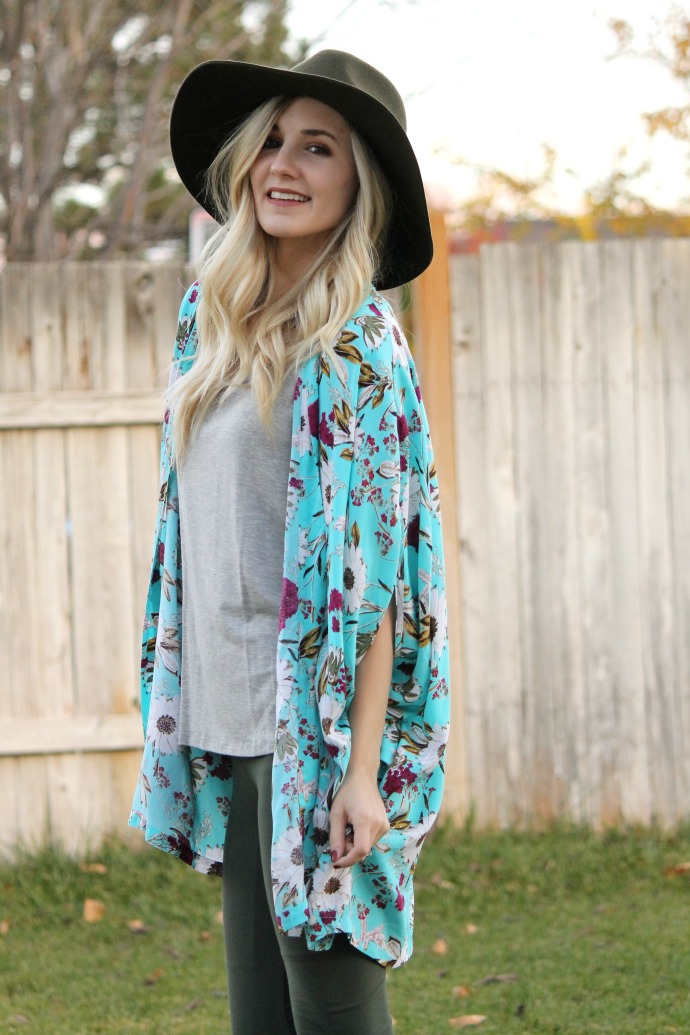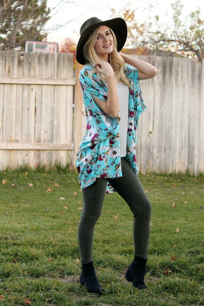 this is one of those outfits that I like never want to change out of. like, really. can I wear this everyday???? leggings, a comfy tee and cute boots?! is this real life?! what an easy combination! I added the floral kimono – because I’m a print/pattern girl π and was feeling a bit naked in just a tee shirt and leggings – hello, it’s the middle of November! but you bet when it’s warmer out I’ll be caught in this ensemble all the time! I’ll be straight up though, I’m posting this outfit about a week since I took the pictures (it’s been crazy here) and I have already worn this tee for like 4 days. π the neckline is perfection – it’s a bit longer in the back and has the prettiest drape. it’s safe to say I could use this in ALL the colors.
