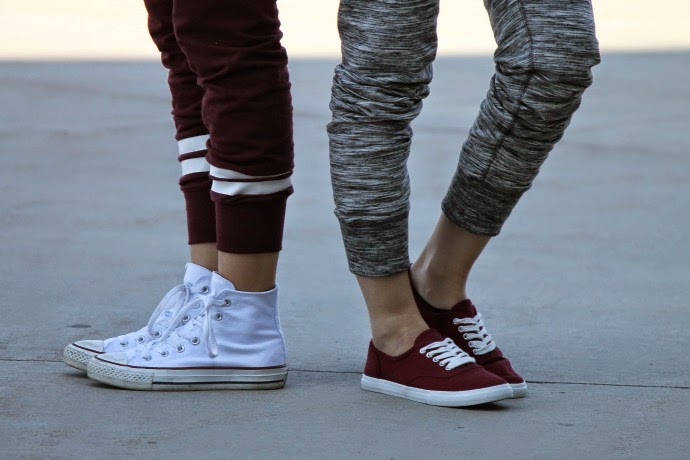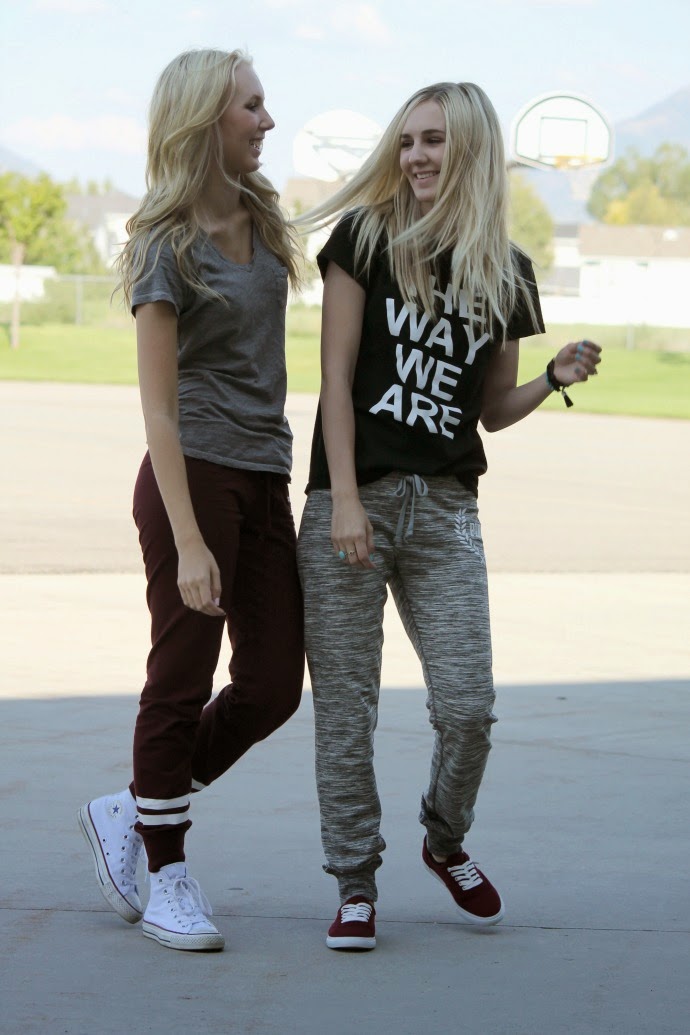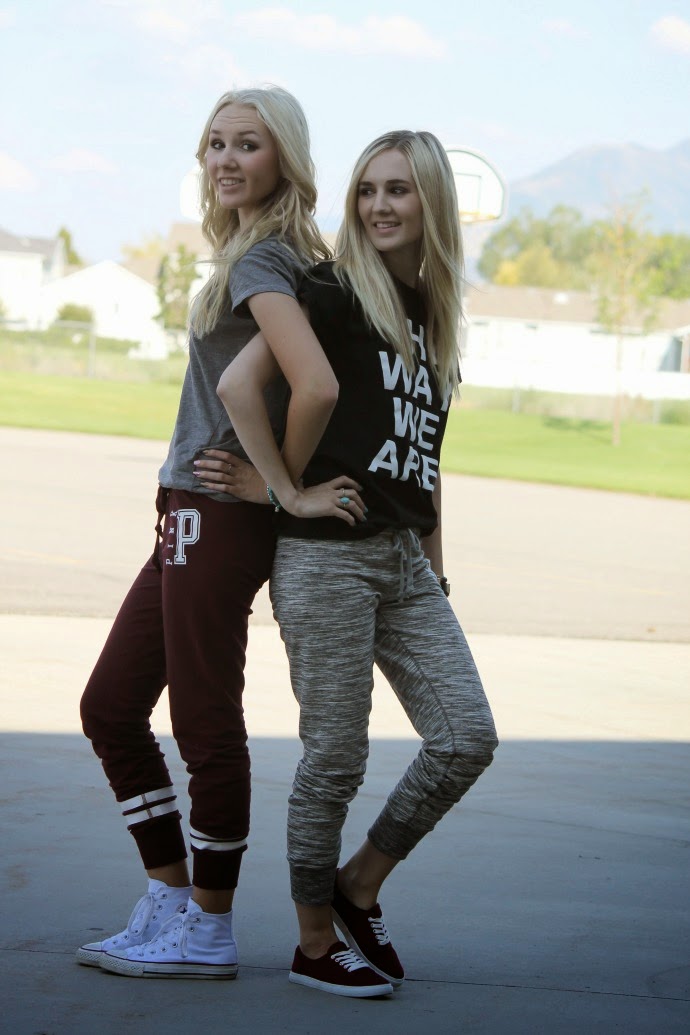 I love hanging out with my sister, and we get told quite often how we either look alike or act alike. when we were younger we’d always wear similar outfits, and now as we’re older we still have similar taste. we really love VS Pink sweats and when the Gym Pant came out we were thrilled! the fit is so cute, and the colors are amazing, we also love the cobalt blue and olive green ones π