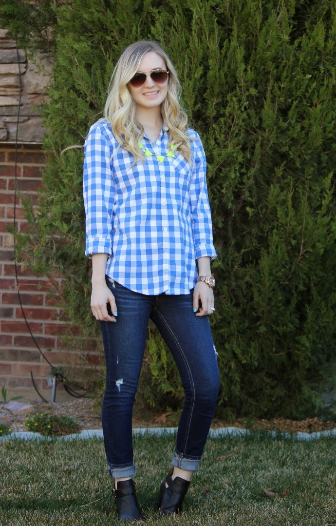 necklace via Rocksbox // AEO button up, old .. others I’m loving linked below // Hollister denim, old // Fossil watch // Payless booties, similar linked below // Target sunglasses, similar linked below