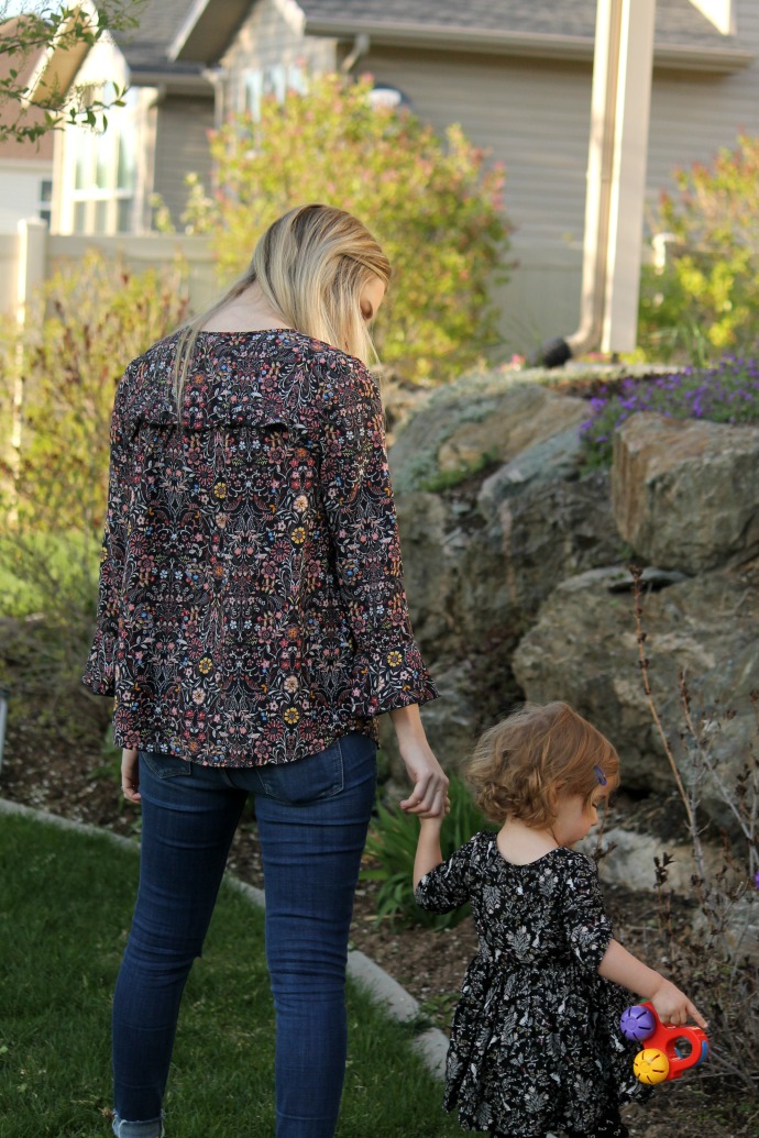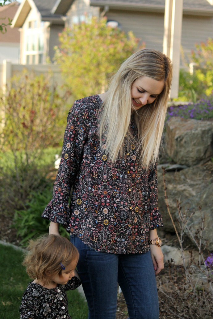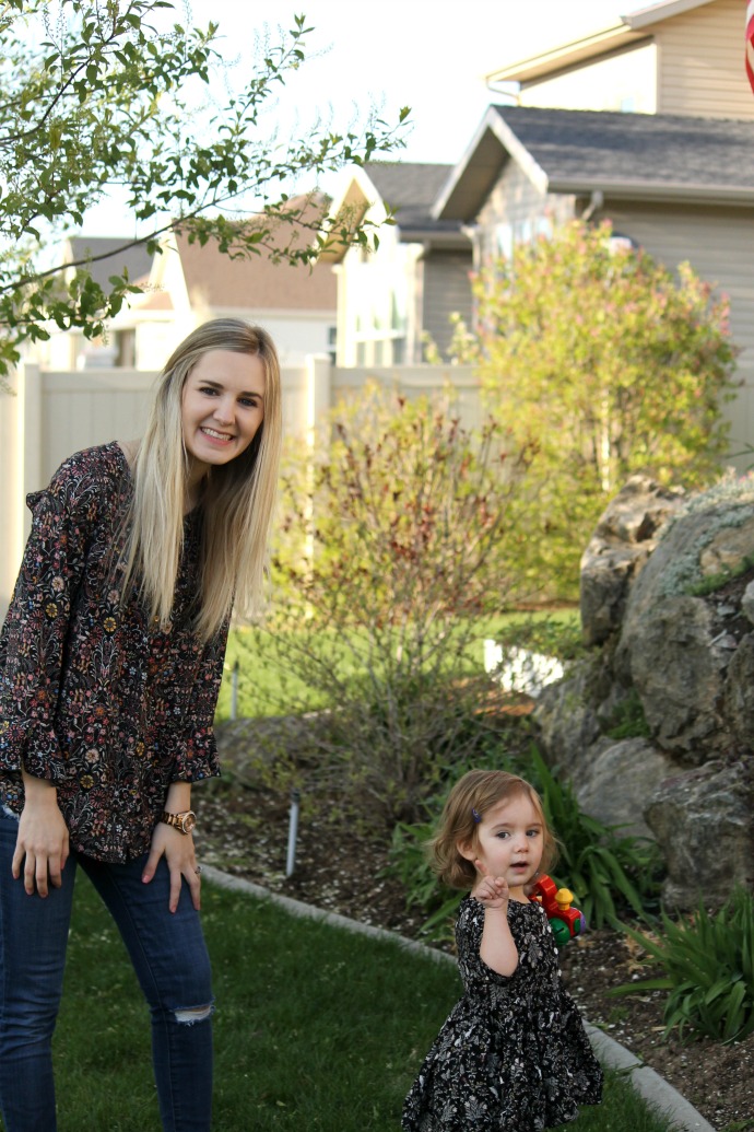 having a little girl I was so excited for all of the ‘coordinating’ outfits, but to be honest with you I just never really got around to doing all the matching π so now that’s she’s getting older (almost 2!) I figured we should just start π better late than never right?! and who knows someday she’ll love to dress up in mama’s clothes and maybe then she’ll still want to match me π I love matching my mom and sister – it might be my love of family but I don’t think I’ll ever get sick of it. I’m a sentimental weirdo like that π Navi has finally let us put clips in her hair – she’s usually running around looking like a wild child with her hair going every which way but somedays (very rarely) I can get a bow or a clip in there and I’m a proud lady! even if it doesn’t totally match π at least she can see!