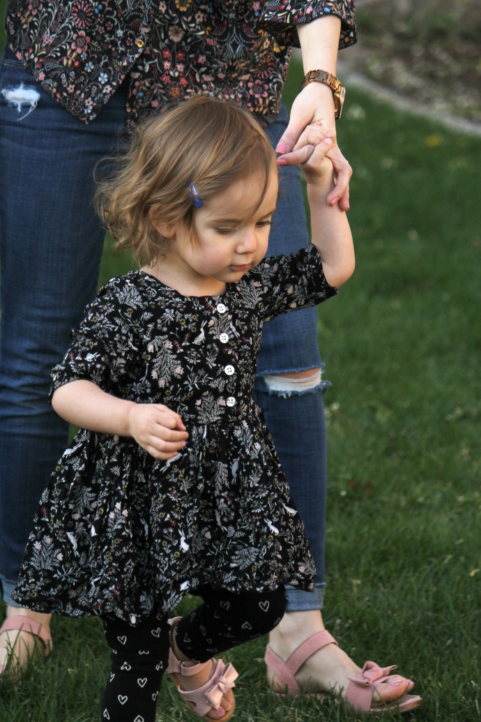 having a little girl I was so excited for all of the ‘coordinating’ outfits, but to be honest with you I just never really got around to doing all the matching π so now that’s she’s getting older (almost 2!) I figured we should just start π better late than never right?! and who knows someday she’ll love to dress up in mama’s clothes and maybe then she’ll still want to match me π I love matching my mom and sister – it might be my love of family but I don’t think I’ll ever get sick of it. I’m a sentimental weirdo like that π Navi has finally let us put clips in her hair – she’s usually running around looking like a wild child with her hair going every which way but somedays (very rarely) I can get a bow or a clip in there and I’m a proud lady! even if it doesn’t totally match π at least she can see!