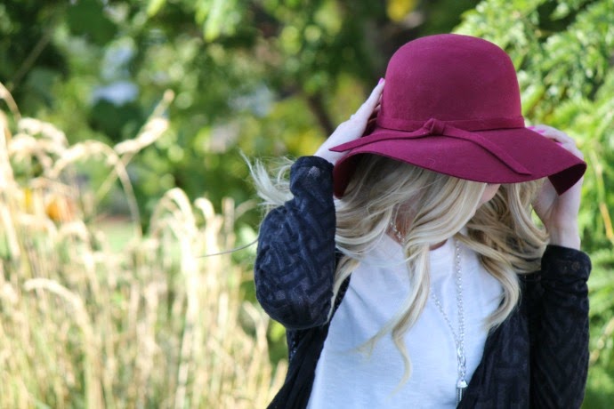hat Bohme Boutique // white top Forever 21 // cardigan Buckle, old // pants Maurices, old, similar // necklace Grace Adele (no longer available)