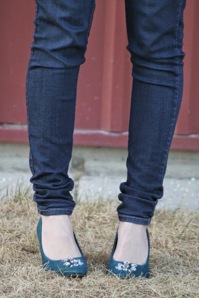 floral blouse via Bohme // flying monkey jeans via Bohme // VS Pink puffer vest // Fossil watch // Payless teal heels // gem stones, Joann’s // pink stone bangle, Candles and Confetti // white glitter bangle (borrowed from sister) π